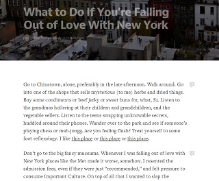 A nice piece offering some advice on what to do when you feel your passion for New York waning.