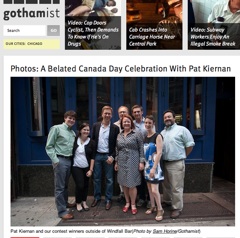The winners of Pat’s annual Canada Day contest with Gothamist gathered Tuesday night for beer and poutine at Windfall, the midtown bar known for its Saturday “Hockey Night” gatherings.