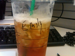 Today’s Starbucks Alter Ego was submitted by Kathleen. She listened carefully for the barista to call her name. Turns out she should’ve been listening for Emily.