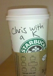 This might be my favorite yet. Kris submitted today’s Starbucks Cup alter ego.