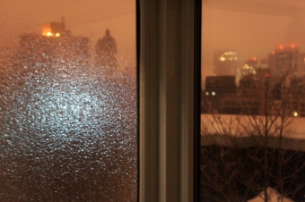 I have a corner window in my apartment. One side faces south and one faces east. This morning it’s a perfect example of what happened overnight with the ice storm.