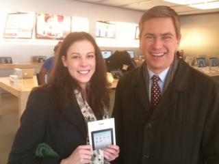 I just left the Apple Store, where I presented Pat’s Paper reader Jenn Sittig with her brand-new iPad. Jenn won our free giveaway by signing up to get our daily email. Thanks again to all of our loyal readers for their continued support. And remember to pass on our daily newsletter to your friends.