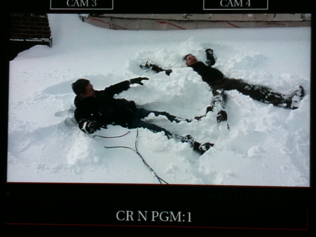 With the heavy snow in New York this morning, I did the opening block of our 9 am hour on the roof of our newsroom. NY1 weatherman John Davitt even played along with my invitation to test the consistency of the snow for snow angels.