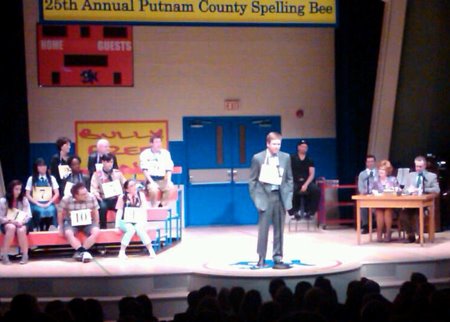 I was called from my seat, along with the other audience spellers, just a few minutes into the opening act. We took our places in the bleachers and the spelling bee began. Mostly, our role was to stay out of the way of the comedy and spell a few words when necessary. We weren?t given the words or prepped in any way, but the contest is clearly engineered to at least make sure that everyone gets one right answer before being sent back to the audience. “Canadian” was the first word I faced. My answer was correct.