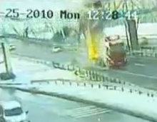 This is the most remarkable piece of video I saw today. A raised dump truck smashed into a pedestrian bridge in Istanbul. The bridge disintegrated as someone walked across it.