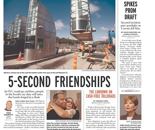 Time’s up for toll booth workers on Orange County’s toll road network. The Orange County register caught up with some of the workers who are being replaced by cashless toll collection systems. Many said they’ve formed bonds with regular customers despite their brief interactions. That includes the man who never wears pants, whom workers describe as polite. No one has ever asked why he doesn’t wear pants.