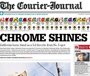 The Louisville Courier-Journal lays out the odds and post positions for the 20 horses taking part in Saturday’s Kentucky Derby. California Chrome is a 5-2 favorite to win the 104th running of the most famous horse race in America. The Santa Anita winner will start at post position 5.