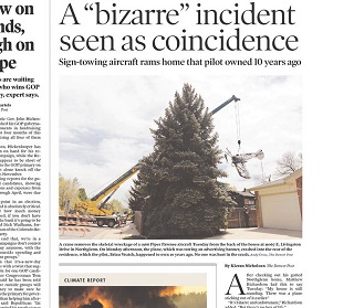 It’s being called a strange coincidence. A Colorado pilot flying a plane towing an advertising banner crashed into a house he once owned 10 years ago. No one was hurt in the crash. The Denver Post says the pilot was looking for an open field to land when his plane started losing power. He didn’t even realize he had crashed into his old house until he later saw news reports on television.