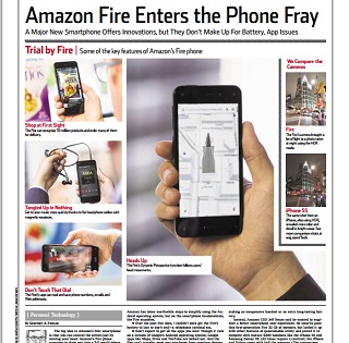 The Wall Street Journal’s Geoffrey Fowler reviews Amazon’s first smartphone, the Fire. He says the phone has plenty of gimmicks, like the ability to operate it by moving your head. But the phone has some basic flaws like poor battery life and an inability to transfer many app purchases from previous phones. Fowler says the root of the problem is Amazon’s oversize ambitions for the phone.