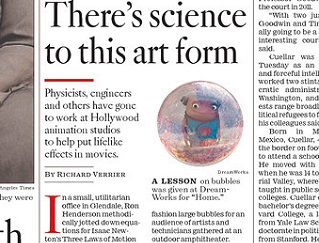 Gone are the days when a cartoon character would run off a cliff and defy gravity (at least for as long as he was able to avoid looking down). These days, animators are looking to create the most realistic elements possible. To achieve that, the Los Angeles Times says, many film studios have turned to high-level physicists, engineers and other scientists who have left careers in aerospace or academia to work in the movie business. They help create algorithms that simulate realistic water, fire, dust and other elements.