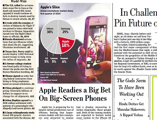 The Wall Street Journal says Apple is placing huge orders for larger screen phones, in a bid to meet demand from customers who have sought out bigger screens from companies like Samsung and others. Apple has reportedly asked manufacturers to produce 70 million to 80 million combined units of iPhones with 4.7-inch and 5.5-inch displays. Apple’s initial order last year for the 4-inch iPhone 5S and 5C was only 50 million to 60 million units.