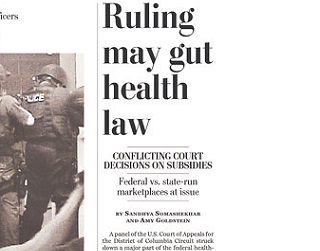 Hours after a panel of the U.S. Court of Appeals for the District of Columbia Circuit struck down a key part of the Affordable Care Act, a separate panel for the U.S. Court of Appeals for the 4th Circuit, based in Richmond, issued a contradictory ruling. The DC court ruled that insurance subsidies that help millions of Americans pay for coverage are illegal in three dozen states that did not set up their own healthcare exchanges. The Washington Post says the rulings could set up another Supreme Court challenge.