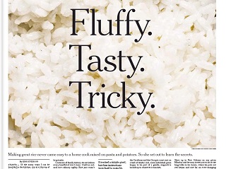New York Times food writer Kim Severson embarks on a quest to make the perfect pot of rice - a skill that has eluded her throughout her culinary career. The first thing she discovered is that those who cook rice well, don’t necessarily know how to explain it. She offers what she did learn along the way: the kind of rice you buy matters, rinse it well, salt it well and measure precisely. Or as one of her colleagues told her, just use a rice cooker.