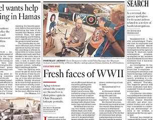 The Los Angeles Times introduces us to Chris Demarest, a painter whose latest project is creating portraits of World War II veterans in their prime. Over the past few years he’s painted dozens of these portraits, which he now brings with him to museums and libraries as a self-funded traveling exhibition. As he travels, he creates new works for people he meets along the way. He says many veterans see the war as the most significant time in their lives.
