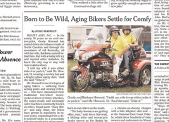 Great headline in the New York Times this morning: “Born to Be Wild, Aging Bikers Settle for Comfy.” Aches and pains have led aging motorcycle enthusiasts to swap in their hogs for trikes. The three-wheel bikes are more stable than traditional motorcycles—“equal parts ‘Easy Rider’ and easy chair”—and apparently safer. I love this quote from 74-year-old Grady Howard: “I told my wife it was either trike it or park it, and she said, ‘Trike it.’ ”
