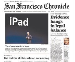 He was wearing a black button down, not a black turtleneck. And the iPad he was introducing was not the first one, but the third. There’s an almost familiar image on the front page of the San Francisco Chronicle this morning. That’s Tim Cook, not Steve Jobs, debuting Apple’s third generation tablet yesterday. It’s faster and has a clearer screen than the one I bought two months ago. And it can connect to 4G cell networks.
