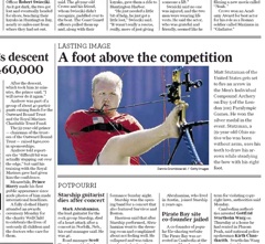 Pretty amazing photo in the Houston Chronicle this morning. That’s Matt Stutzman getting ready to fire off an arrow at the Paralymic Games in London. Stutzman, who already one a silver medal in archery, was born with no arms and instead uses his teeth to draw his arrows while using a foot to steady his bow.