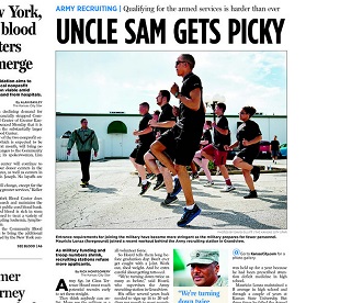 Joining the military is no longer a last resort. The Kansas City Star says qualifying for the armed services is tougher than ever. Only 20% of those who apply qualify for service. An Army ROTC instructor say military budget cuts have led recruiters to seek out the same highly qualified high school graduates that colleges are going after.