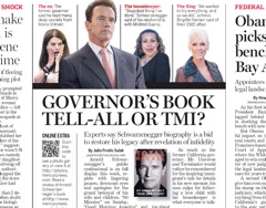 Is it interesting? Or TMI? The San Jose Mercury News reviews Arnold Schwarzenegger’s new memoir this morning but can’t figure out whether the book is sincere or “self-absorption on steroids.” In addition to several affairs he conducted over his 25-year marriage to Maria Shriver, the former Governator admits he kept other secrets from his wife—like his decision to run for governor, which he disclosed just four days before his public announcement.