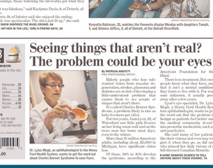 The Detroit Free-Press says besides the general wear-and-tear of aging, our eyes face another threat as we enter old age: seeing things that aren’t there. It’s called Charles Bonnet Syndrome and affects 20 to 40 percent of the 25 million Americans who suffer from age-related vision loss, percentages that experts say could soar as baby boomers get older. Those who suffer from the condition see anything from people who aren’t there to shapes that aren’t either. There’s currently no cure for the condition, which tends to go away after a year or two. Although it can be disconcerting, experts say once people come to terms with the fact that it’s not a mental issue, they learn to live with it. Because so little is know about the syndrome, patients are often erroneously prescribed anti-psychotics. Explains an ophthalmologist: “It rarely needs treatment; it mostly needs reassurance.”