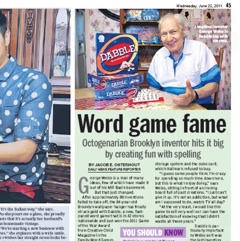 After 80 inventions, George Weiss finally found one that stuck. The New York Daily News interviews 84-year-old Weiss in today’s paper about the success of his new board game, Dabble. The premise of the game, which was just named the best of 2011, is to create a word of two, three, four, five or six letters from a pile of 20 in front of you. To win, the leftover tiles of the other players are added up. Weiss says he got his first patent back in 1958 but it wasn’t until Dabble made its debut that success found him. Apparently, no one was interested in his “convertible Christmas ornament, the ‘Do It Your Shelf’ artistic storage system” or the “cube card” he pitched to Hallmark.