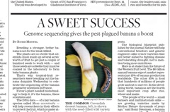 “If ever a plant needed biotechnology to help it, it’s the banana.” That, according to the LA Times, who says scientists all over the world are sipping daiquiris at the news that researchers in France were finally able to sequence the banana’s genome. Apparently, the fruit is so sterile, it takes several hundred just to produce a couple seeds. The breakthrough will help farmers grow heartier, disease-resistant bananas, the world’s fourth most important crop.