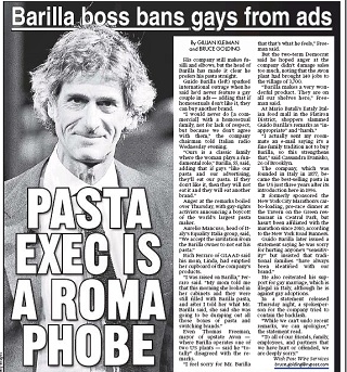Barilla pasta company chairman Guido Barilla is in hot water after saying he’d never use a gay family in an ad for his pasta. He says his view of the family is one where the woman plays a traditional role, adding that if gays don’t like it, they can buy another brand. The New York Post says an apology from Barilla has done little to quell the controversy.