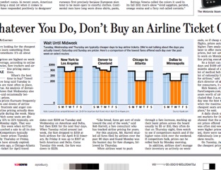 Tuesdays, at 3 pm EST. That’s the best time to buy a plane ticket says the Wall Street Journal. Most airlines post sale fares on Monday night and by Tuesday, competitors have come back to their counteroffers. The deals typically last until Thursday when there is a spike in price, just in time for the weekend. So there is, sort of, a “method behind the madness” behind airline fare pricing. Well, not quite. But there are certain patterns that a savvy consumer can pick up on. For one, never buy a ticket from Thursday to Monday—that’s when fares are at their highest.