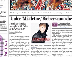 The parade of Christmas albums has already begun, with Justin Bieber among the first to weigh in. USA Today says Bieber’s songwriting and drumming is on display in “Under the Mistletoe,” especially during a “wildly street” version of “Little Drummer Boy,” featuring Busta Rhymes.