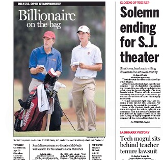 I wonder if he’ll get a tip. Silicon Valley billionaire Scott McNealy is set to caddy for his son, an amateur golfer playing in this week’s U.S. Open. The San Jose Mercury News says the Sun Microsystems co-founder will lug his son Maverick’s clubs around the Pinehurst Resort & Country Club. Scott McNealy taught his son to play golf at an early age by having him aim for a lawn sprinkler in the backyard.