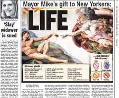 New York City just released some new data about life expectancy and the Post has a funny take on it in today’s paper. That’s Mayor Bloomberg as God. He’s the man who taketh away salt and cigarettes, but he giveth life—or at least a bump in the city’s life expectancy statistics—in return.