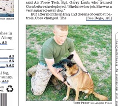 Veterans aren’t the only ones who suffer from the effects of war—service animals also get post-traumatic stress disorder says the LA Times. Canine PTSD is now recognized as a condition by military dog specialists and they are working to find treatments including re-training and in some cases, a prescription for Xanax.