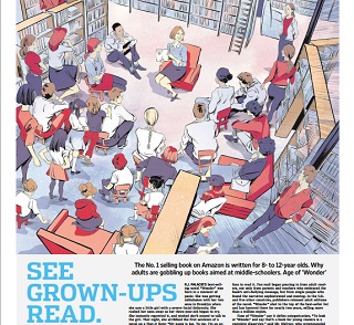The Wall Street Journal says books aimed at younger readers are becoming more and more popular among adults. Take R.J. Palacio’s best-selling novel “Wonder,” for example. She wrote it with middle schoolers in mind, yet it’s been embraced by adults and has sold more than a million copies. The Journal says much of today’s pop culture, from movies to music is aimed at both adults and children.