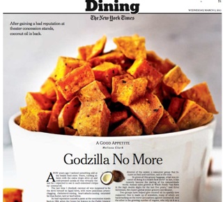 Just in case you didn’t get the memo: coconut oil is now good for you. The New York Times says the oft-maligned fat has gone through a transformation recently, from “the devil himself in liquid form” to the “darling of the natural-foods world.” The Times says previous research about coconut oil may have been biased by using “partially hydrogenated” varieties. Another reason for its recent elevated status: vegans. As vegan cooking becomes more mainstream coconut oil, which is a staple for bakers who want to avoid using butter, has followed suit.