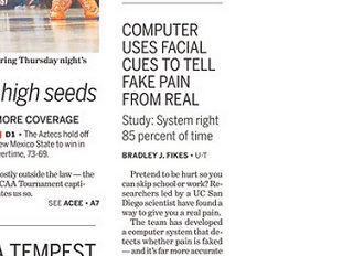 Researchers have developed a computer that’s much better than humans at determining when someone is faking pain. Using facial cues, the computer was able to detect whether pain was real or fake 85% of the time compared to just 55% accuracy of trained observers. The San Diego Union-Tribune says the program could be used to determine whether someone really needs painkillers or for children who can’t articulate pain well.