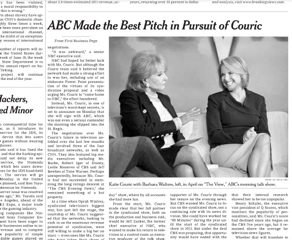 In “one of television’s worst-kept secrets,” Katie Couric is expected to announce her next move today says Bill Carter of the New York Times. Insiders say Couric has signed a deal with ABC. The details have not been publicized but the deal allegedly gives Couric a cut of the syndication profits, which could add up to tens of millions of dollars each year. Some say Couric’s insistence that Jeff Zucker, the ousted head of NBC, be the executive producer of her return to daytime TV caused NBC to back away from a deal to get her.
