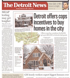 Talk about a signing bonus. Detroit’s mayor Dave Bing is so desperate to get police officers to buy houses in the Motor City that he’s offering up a deal they can’t refuse: $1000 houses. According to the Detroit News, 200 foreclosed-upon houses are being offered up to cops who are willing to become homeowners. The deal will also make them eligible for $150,000 federal rehabilitation tax credit. The plan is called Project 14, which is police code for “back to normal.” The News says 53 percent of Detroit’s police force live in the suburbs.