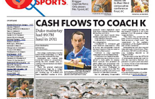 Duke’s storied basketball coach Mike Krzyzewski was paid $9.7 million in 2011. USA Today says that’s the greatest one year comp for a college coach since the paper began tracking these numbers in 2006. $1,978,401 of that is in base pay, while the rest was paid in bonus incentives and deferred compensation. Other coaches with big paychecks include Kentucky coach John Calipari ($5.4 million) Louisville’s Rick Pitino, and Kansas’ Bill Self (about $5 million each), though the paper says it’s tough to compare public and private school salaries.