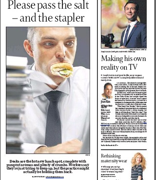 The Minneapolis Star-Tribune says your desk is the new lunch hot spot. With heavier workloads and little access to restaurants or cafeterias, many workers find eating at their desks to be their only option. Even the IT worker interviewed in the article says he eats at his desk, despite being called upon to clean other people’s keyboards when they get clogged with crumbs. If you must eat at your desk, the Star-Tribune says, skip foods with strong odors and toss your trash in the breakroom, not in the garbage can by your desk.