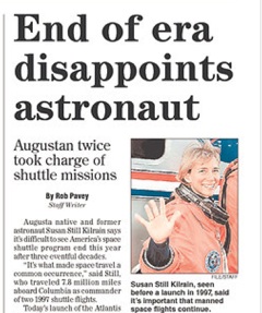 Astronaut Susan Still Kilrain disagrees. Kilrain, who commanded two 1997 missions on the space shuttle Columbia, told the Augusta Chronicle that she was sad to see the shuttle program end, saying it’s “what made space travel a common occurrence.” She urged the president “to find a way to continue manned flight.”