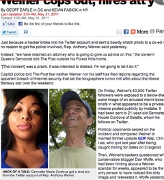 An opinion piece in the New York Post pokes holes in Rep. Anthony Weiner’s explanation of his Twitter scandal. If you haven’t heard, Weiner says a “crotch shot” sent from his Twitter account to that of a 21-year-old female college student from Seattle over the weekend was the work of a hacker. Tech expert Peter Ingemi says it’s odd that with so many “famous folks” to choose from he had made the student one of only 200 people he followed. Ingemi also points out that it’s easy on Twitter to send a public message when you intended to transmit something privately.
