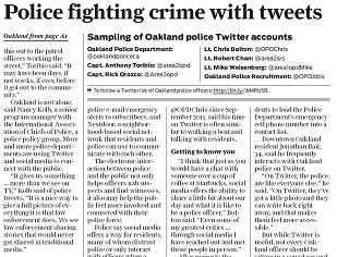 The San Francisco Chronicle says Oakland Police are increasingly turning to Twitter and other social media tools to fight crime. The platforms allow the police to quickly push out descriptions of suspects wanted for crimes. One police captain says in the past, it would have been days or weeks before the department would broadcast that information to the public.