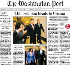 Well, they did it. Lawmakers managed to pass a 153-page fiscal cliff deal last night at 11 pm. The Washington Post says the deal was a “bitter pill” for the Tea Party-influenced House Republicans to swallow because it represents everything they hate about DC—“Too rushed. Too bloated. Too secretive. Too expensive.”