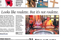 Several South Florida casinos are getting a new game that looks like roulette, sounds like roulette, and “may even smell like roulette,” says the Sun Sentinel—but don’t call it roulette. Roulette is illegal in the state so casino operators are installing a semi-automatic version with a random-number generator that determines the speed of the ball and the wheel, instead of leaving it up to the dealer, which, in the eyes of the law, makes it a slot machine.