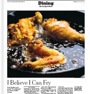 The New York Times gives confidence to those who want to try frying chicken at home. Writer Julia Moskin says it doesn’t have to be messy or fattening. It’s much easier, she points out, than cooking a whole turkey dinner, something most of us do annually. First thing to do is invest in a cast-iron skillet. The next thing to think about is whether to brine or not. Opt for the latter, says Moskin and spend your time thinking about the most crucial part of fried chicken: the crust.