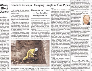 The gas leak that led to the explosion in Harlem that killed eight people earlier this month is a surprisingly common phenomenon in New York and other big cities. The New York Times says nearly half of the natural gas lines in New York were installed before 1940. In 2012 alone, the two distributors of natural gas in New York City reported nearly 10,000 gas leaks - more than half of which were considered serious.