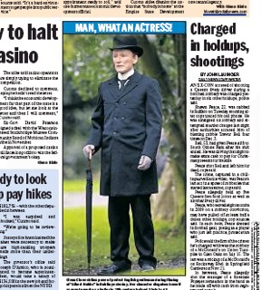 That’s about as Close as it gets. The New York Daily News has a crazy picture of Glenn Close in this morning’s paper, from the set of her new movie, “Albert Nobbs.” She’s dressed up as a man, and without the caption, I’d have a hard time telling who it actually was. In the film, Close plays a woman who disguises herself as a man to work as a butler.