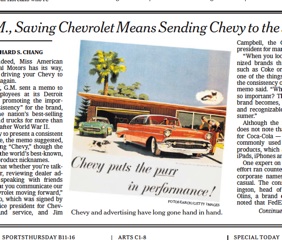 The Times says GM may get their employees to follow suit, but will have a much harder time wiping away the hundreds of pop culture references to Chevy: