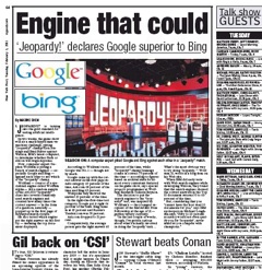 Google came in first, getting the correct answer 69 percent of the time. Ask.com was second, with 68 percent and Bing came in third, with 63 percent. The Post says in comparison, the average person gets the right answer about 60 percent of the time. But a spokesman for the show scoffed at the engine’s results and said: “Fifty to 60 percent accuracy would not even qualify you for ‘Jeopardy!’, never mind let you compete with champions.”