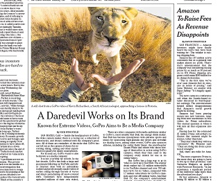GoPro, the company whose cameras are the go-to gadgets for daredevils, is now working on becoming a media company. The New York Times says GoPro is focusing efforts on distributing the content created with its cameras. The Times says the move is designed to help the company survive in a market where standalone cameras have been devastated by smartphones and tablets.